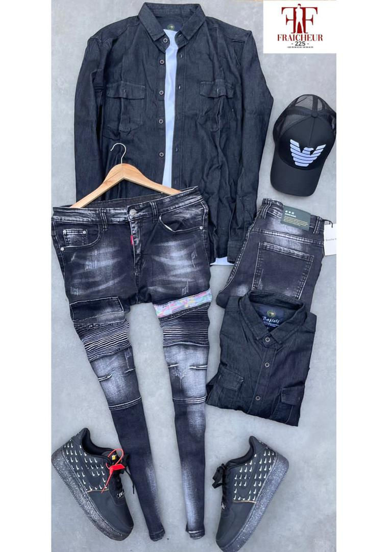 Complet chemise jeans noir delavé